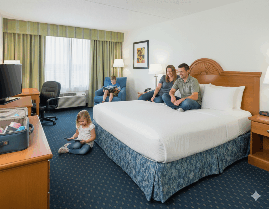 - Picking a hotel with a pool or on-site dining keeps downtime simple and stress-free.
